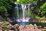 Thác nước Cheonjiyeon: Thác nước là điểm cuối của một con suối, đổ xuống một cái đầm nhỏ, nước từ thượng